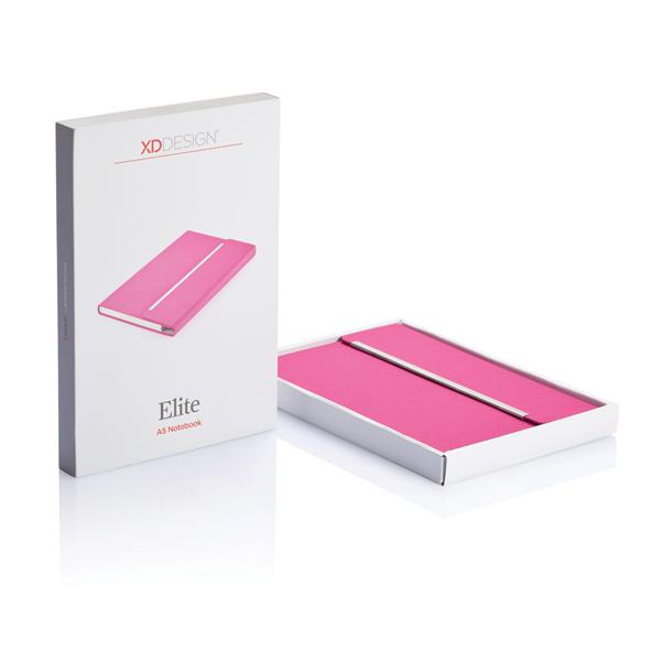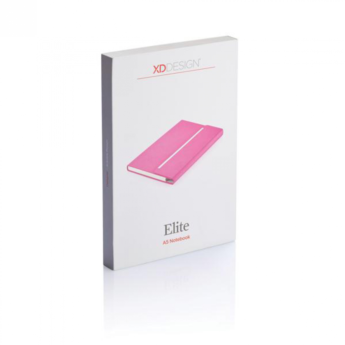 Elite is een stijlvol notitieboek met stof aan binnen- en buitenzijde, 3-luiksysteem en magnetische sluiting. Omvat een A5 notitieboek met 96 vel papier voor al uw aantekeningen. Geregistreerd ontwerp®