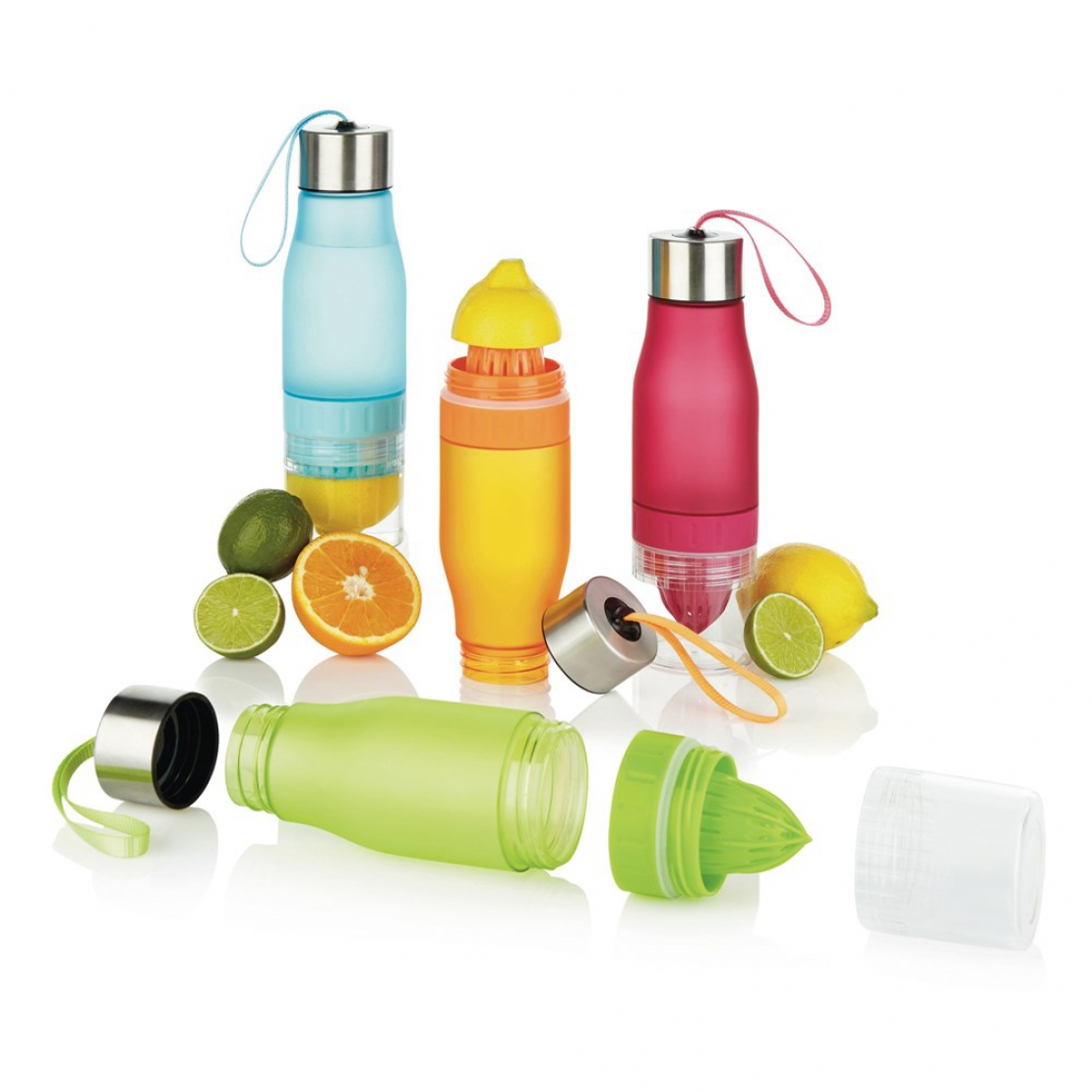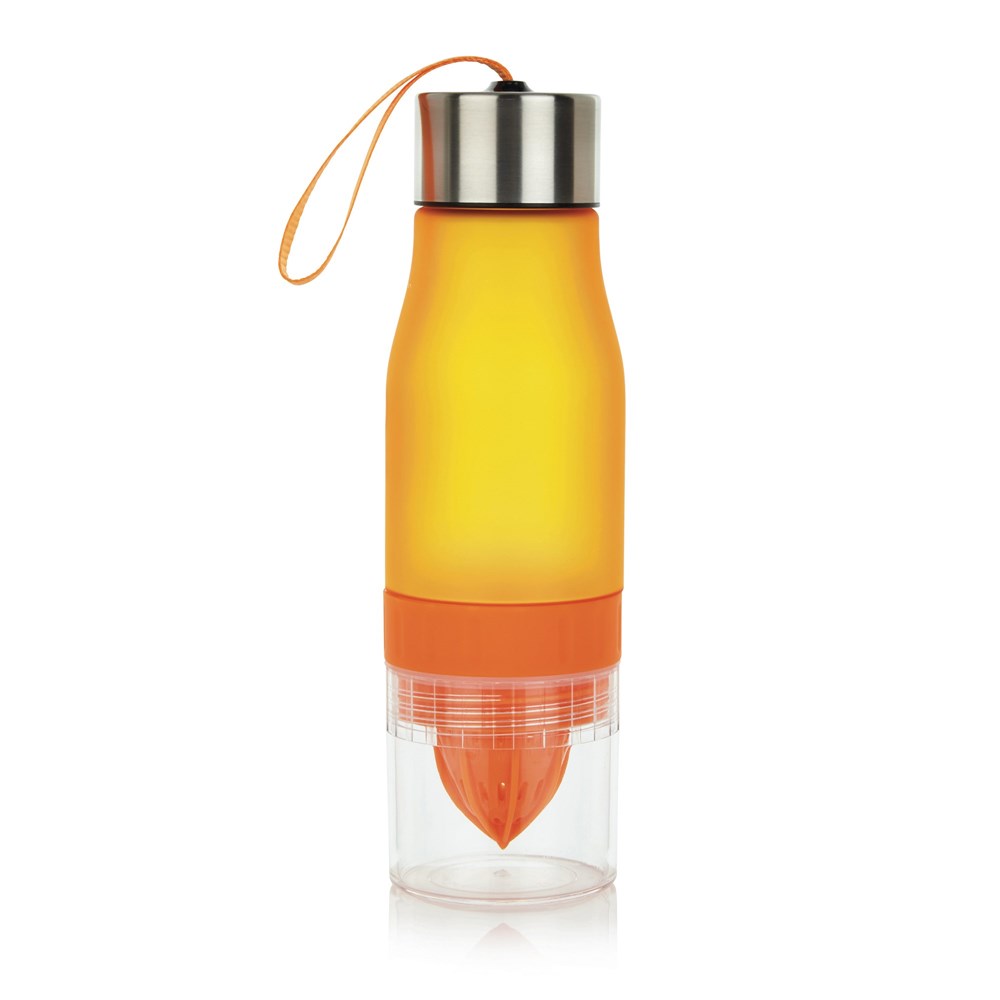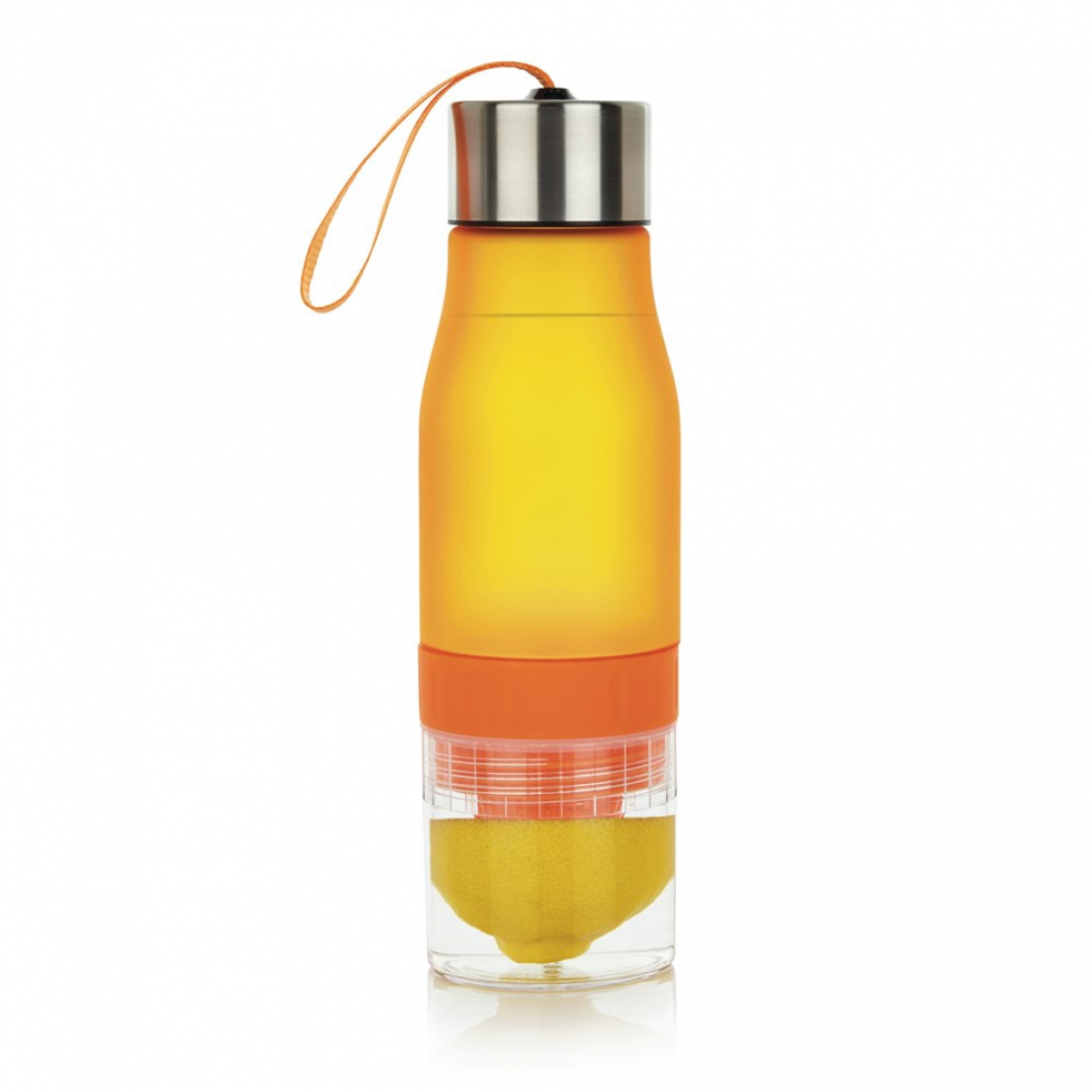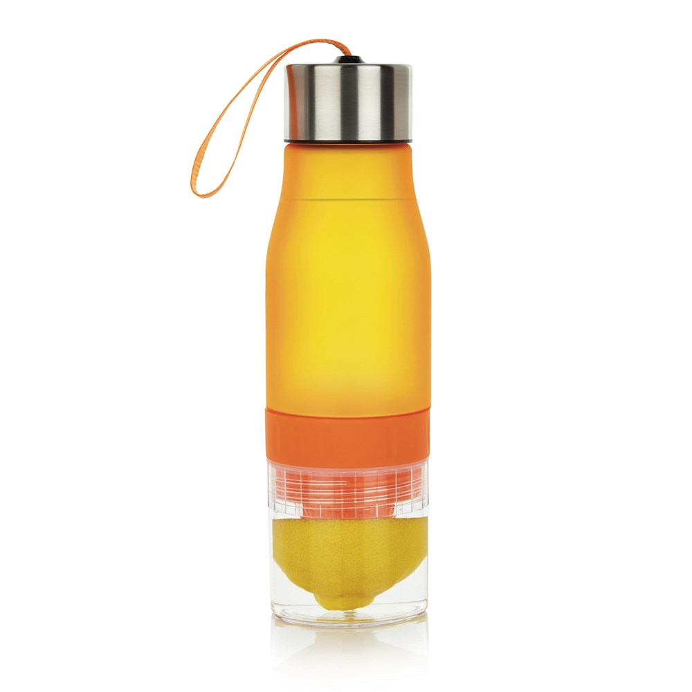 Trendy en innovatieve fles voor citroenwater waarmee u op een makkelijke manier uw water een gezond smaakje geeft. BPA-vrij. Tritan fles met metalen dop.