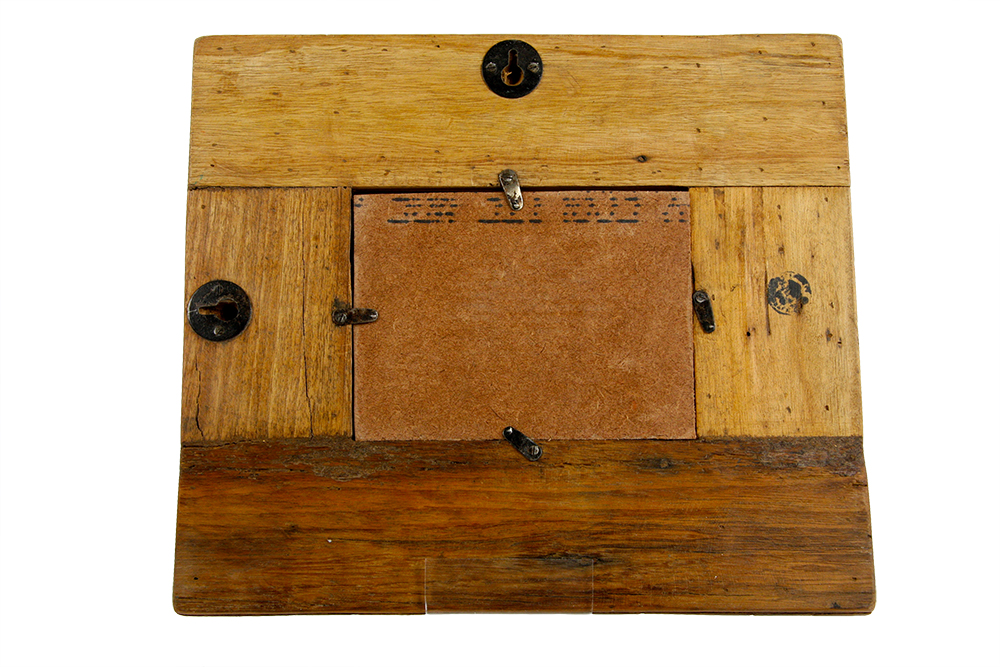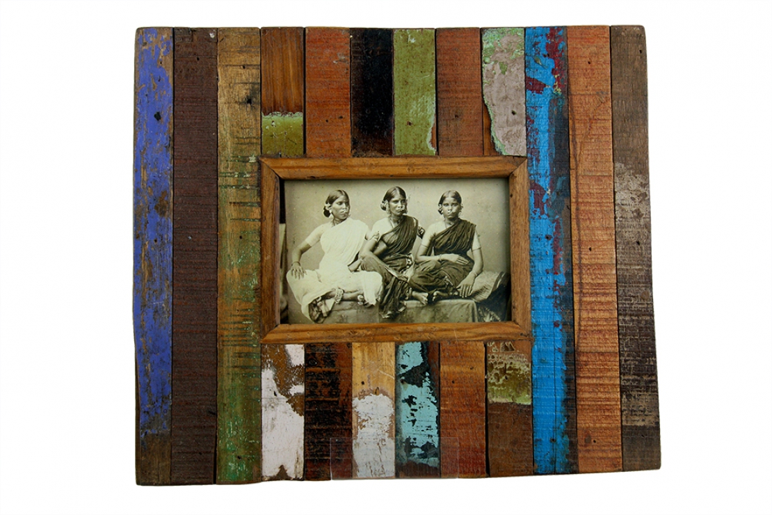 Fotolijst, staand of hangend in een mix, horizontaal en vertikaal, gemaakt van gerecycled oud sloophout, bijv. teakhout, met originele verf.