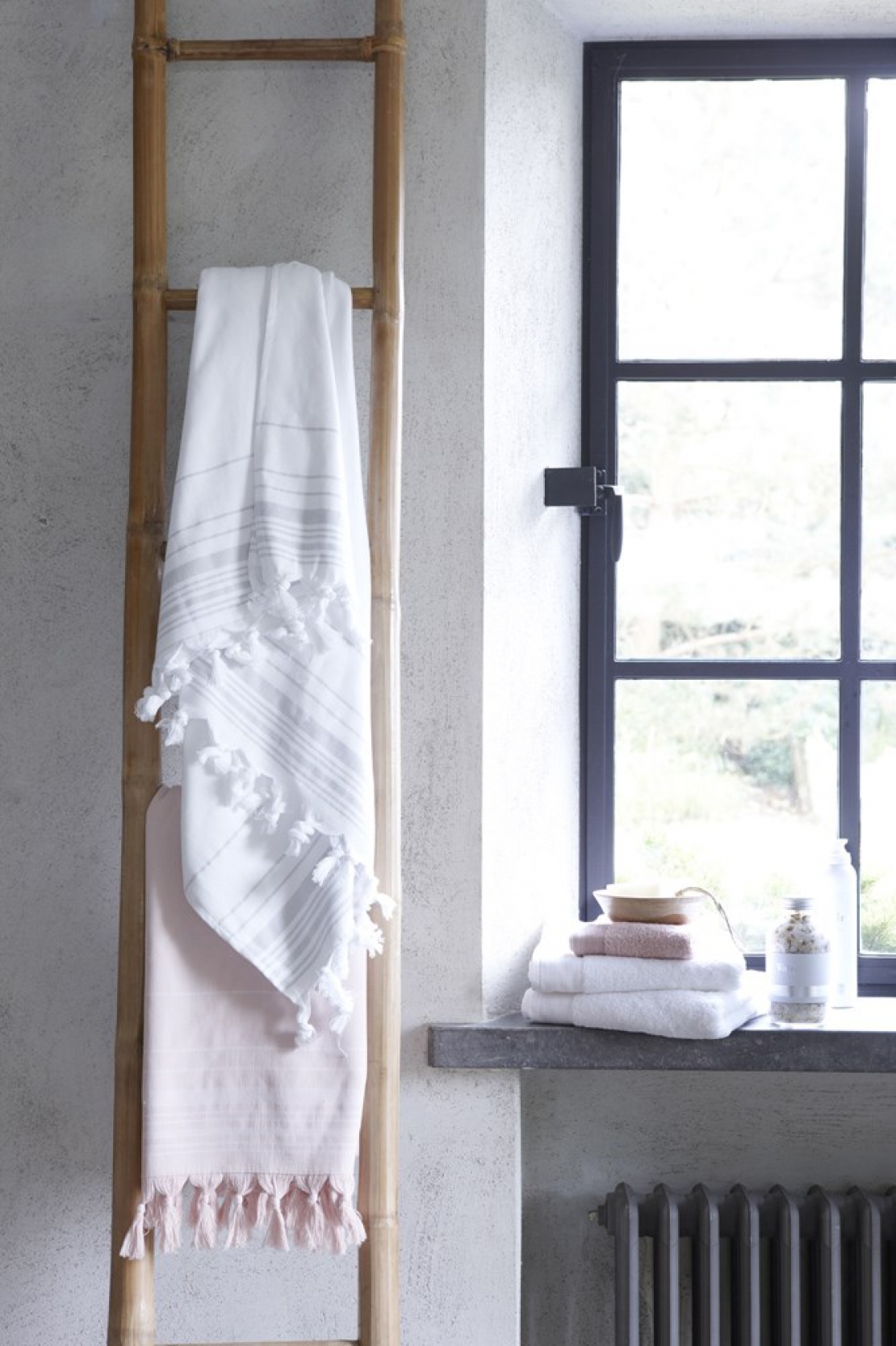 De mooie Walra Hammam doeken zijn luxe uitgevoerd in 100% katoen en aan de binnenzijde badstof waardoor het vocht zeer goed wordt opgenomen. Walra Hammamdoek is afgestemd op de kleuren van Walra badgoed: fris wit, neutraal antraciet, zacht roze en chique petrol met een geweven dunne streep aan de onderzijde van de doek.