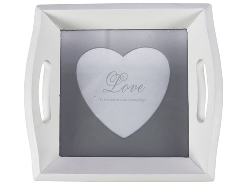Mooi hartje in het dienblad zelf wat dient als fotolijstje. Perfect om kleine voorwerpen op te zetten.