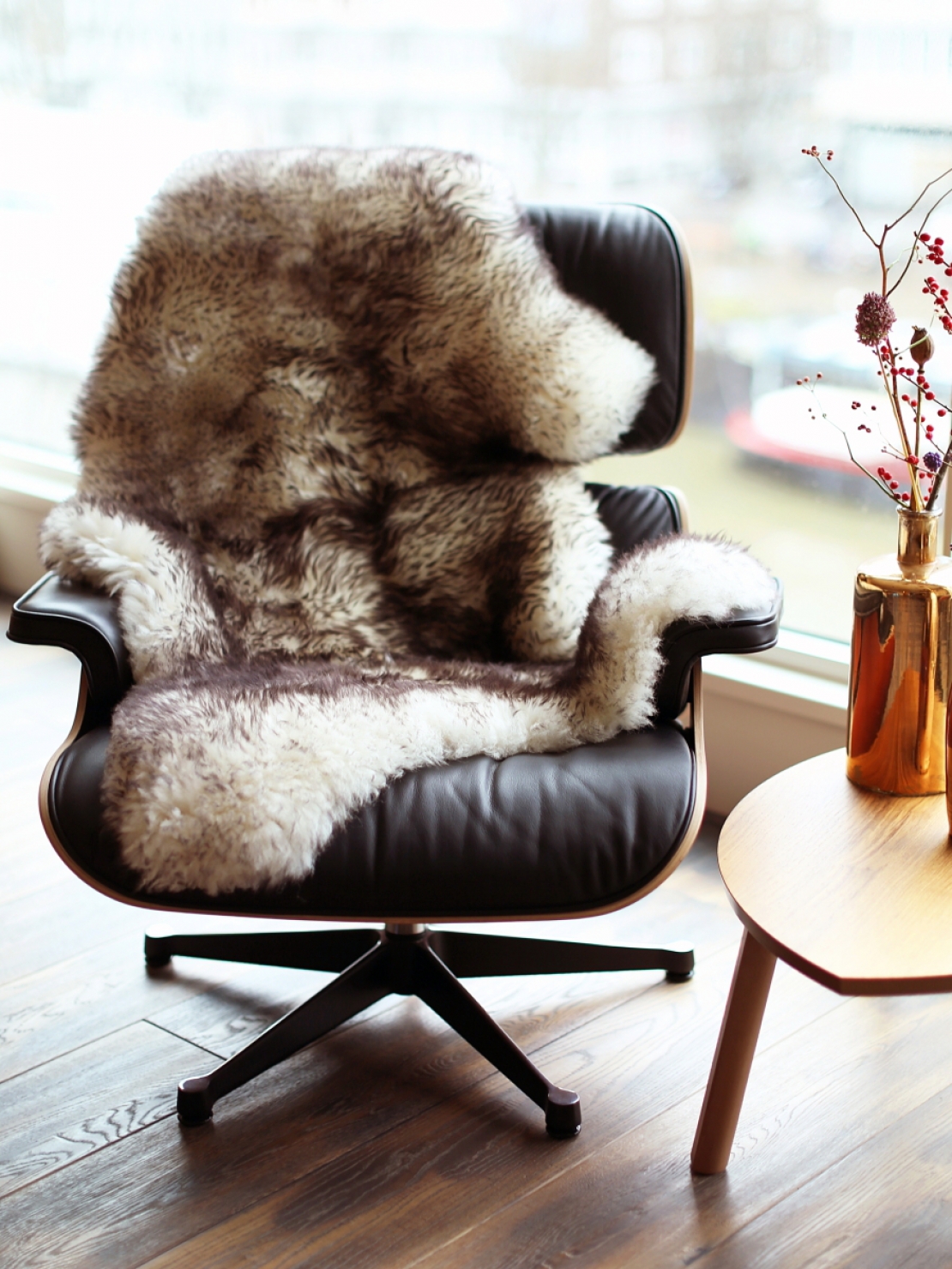 De vacht is wit met bruine, geverfde uiteinden. Het is een zeer soepel vacht waardoor deze goed te draperen is. Leg het op je stoel of bank ter decoratie en het nodigt uit om er meteen op te gaan zitten.