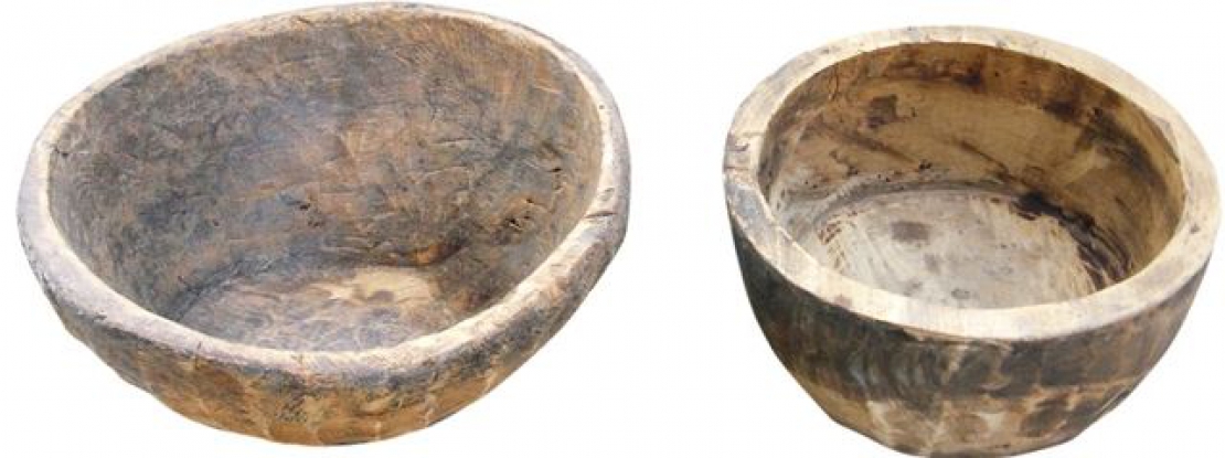 Teakhouten vintage schaal met hoge rand, ontdaan van alle verf, gebruikt door boerenfamilies uit Zuid-India. Elke schaal is uniek dus net even anders en mooi opgeknapt door de timmermannen van Otentic.