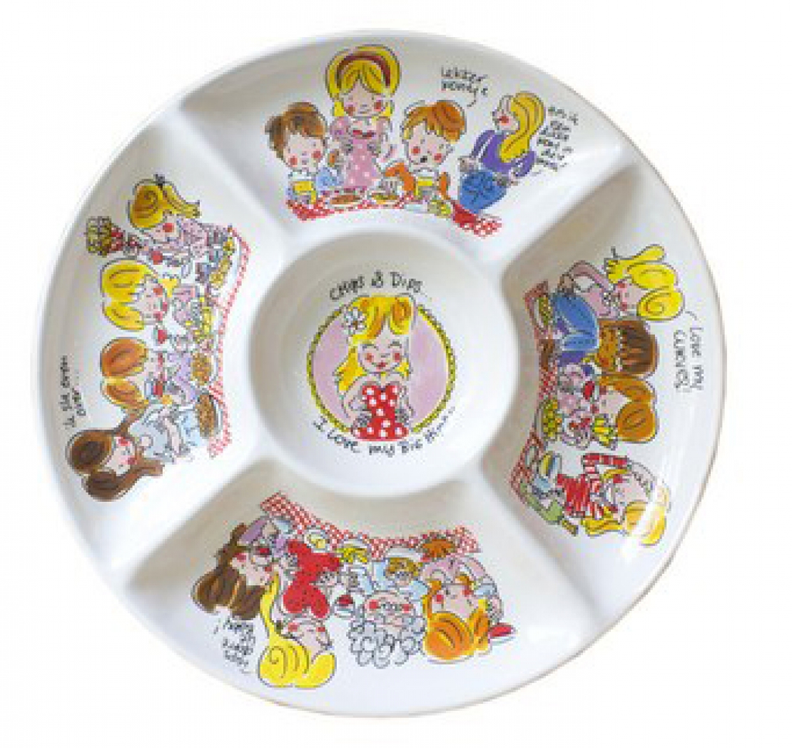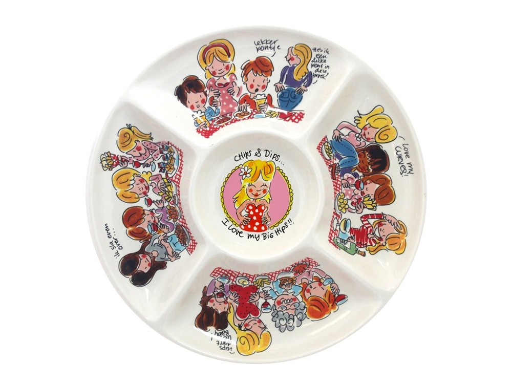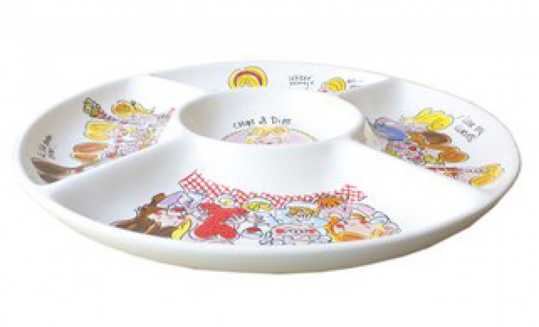 Serveer chips en lekkere dipsausjes nu in deze vrolijke schaal met verschillende vakjes voor chips en sausjes. Verras je gasten met deze leuke schaal!